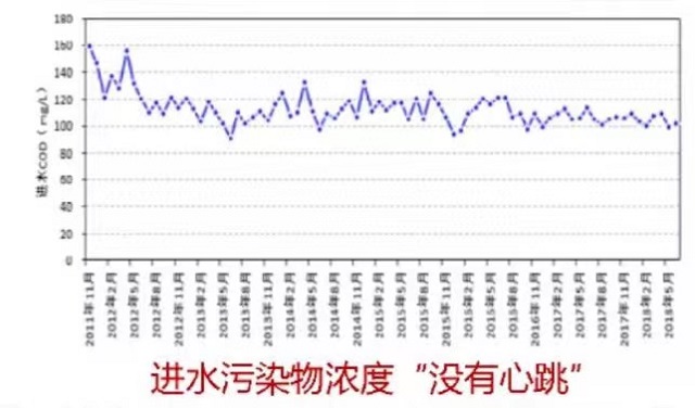 “污水處理廠的進水濃度也應該進行調(diào)查,因為從這個指標入手,我們可以初步判定整個污水收集系統(tǒng)外水入滲的程度,還要包括旱天、雨天水量變化和溢流量調(diào)查。”唐建國同時以圖片舉例,如果污水處理廠的進水污染物濃度沒有“心跳”,進水水質(zhì)基本恒定在一條直線上,就可以判斷出它的進水濃度有問題。