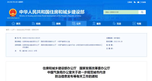 近日住房和城鄉(xiāng)建設部、國家發(fā)展改革委、中國氣象局發(fā)布關于進一步規(guī)范城市內澇防治信息發(fā)布等有關工作的通知。