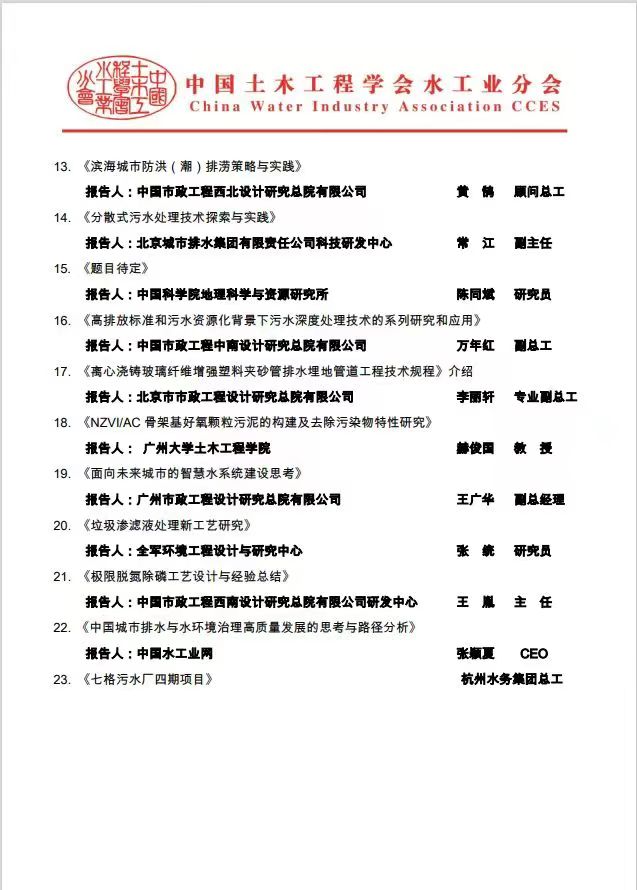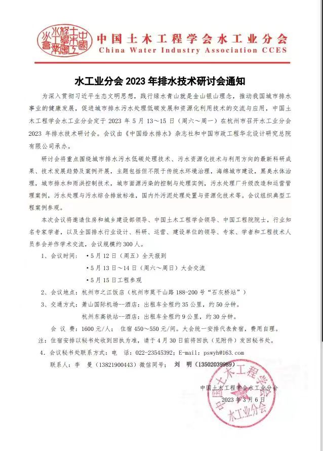 水工業(yè)分會(huì) 2023 年排水技術(shù)研討會(huì)通知