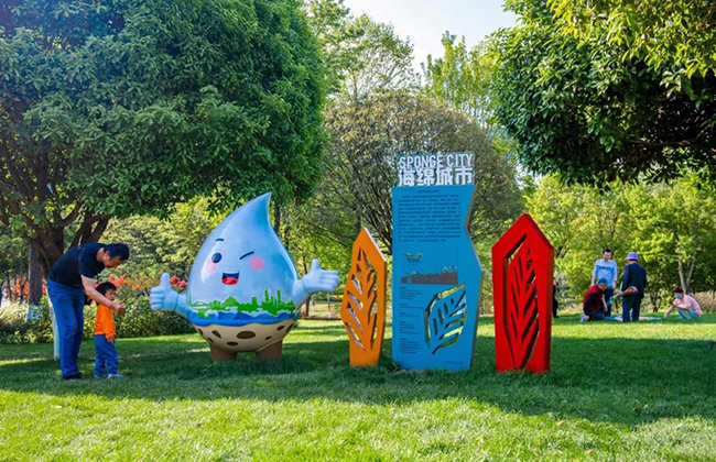 走進該基地,花草樹木錯落有致、滿目翠綠,海綿設計理念體現在每個細枝末節,大家還可以走入雨水花園基地內部,探尋“海綿”的奧秘,成為海綿城市建設的“參與者”和“支持者”。