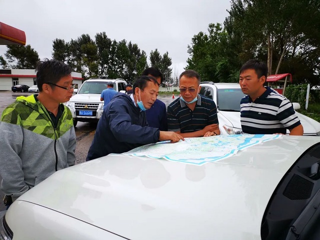 到了現場以后,幾個人把水系圖往車蓋上一攤,現場辦公就開始了,“這樣的畫面很常見。”