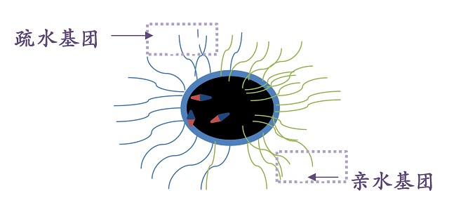 雙親性磁性janus粒子結(jié)構(gòu)示意圖,表明它具有兩種親水疏水基團(tuán)結(jié)構(gòu)。
