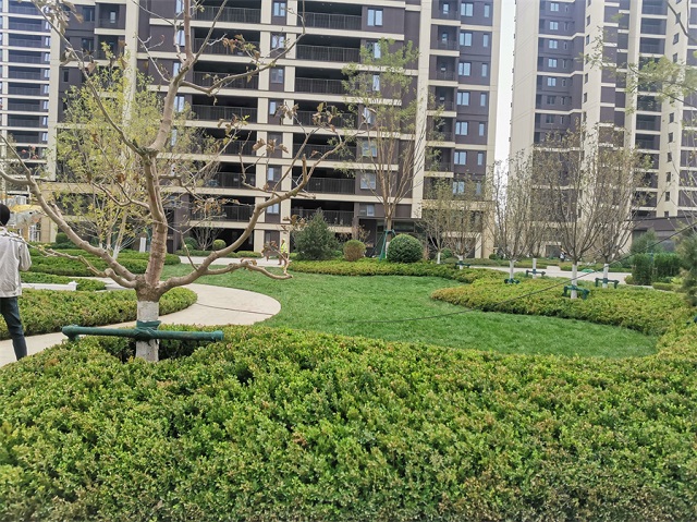 綠城集團天津桂語聽瀾項目位于空港經濟區(qū)環(huán)河東路與東八道交口處,項目類型為住宅小區(qū),可用地面積61808.8平方米,通過設置下凹綠地、透水鋪裝等海綿設施,同樣實現了年徑流總量控制率≥75%的目標。該項目道路均為平緣石,硬質鋪裝豎向高于周邊綠地,雨水自然找坡匯流到下凹綠地內。在滿足排水要求的同時,該項目也強調與景觀緊密結合,喬木種植區(qū)局部下凹,景觀休憩區(qū)整體下凹,微地形起伏環(huán)繞,在有限的用地空間內平衡功能與景觀需求,實現土地的高效利用,既能保護景觀植物,又能創(chuàng)造更多的層次和調蓄空間,豐富景觀效果,實現人與自然和諧共處。