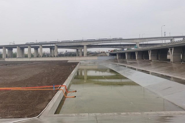 北京:54個水利災(zāi)后恢復(fù)重建項目將在汛前完工 永定河京港澳高速公路大橋南,大寧調(diào)蓄水庫水毀修復(fù)工程施工現(xiàn)場,記者看到,新建的消力池已經(jīng)建好,所有實體工程已經(jīng)完工,一些工人正在做收尾清理工作。