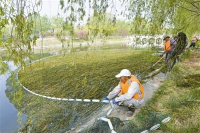 水草是河道生態環境的重要組成部分,水草生長可有效吸附富營養化物質,對凈化河道水質具有重要作用。由于水草生長期結束后會脫落腐爛,為防止其影響河道水環境,市水務部門自今年2月起對中心城區海河等重點河道斷面水草生長情況進行監測,及時采取機械收割、人工圍網等多種方式聯合作業,進一步提高打撈效率。