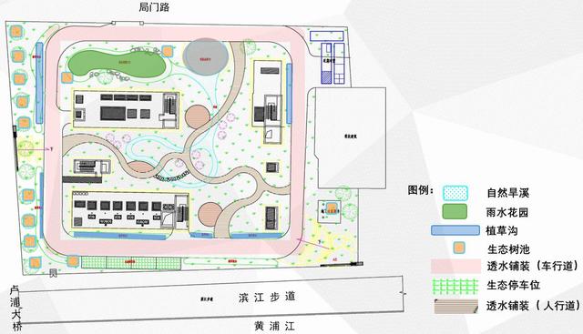 蒙自泵站擁有三個(gè)“第一”——上海第一座多功能生態(tài)排水泵站,第一座開放式的花園泵站,是全國第一座排水文化公園。上海市排水公司負(fù)責(zé)人介紹,蒙自泵站除了雨水泵、截流泵、調(diào)蓄池等排水設(shè)施外,還用雨水花園、透水道路等不同海綿構(gòu)件形成海綿調(diào)蓄,完整地還原水在社會中“使用、排放、收集、處理、回歸”的循環(huán)過程。