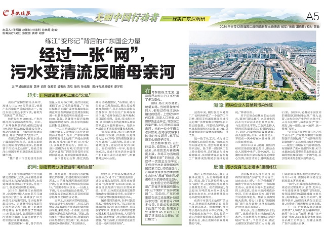 這支國(guó)企治污軍團(tuán)便是廣東省環(huán)保集團(tuán)有限公司(以下簡(jiǎn)稱“廣東環(huán)保集團(tuán)”)。五年間,廣東環(huán)保集團(tuán)在練江流域累計(jì)新建污水處理廠配套管網(wǎng)2191多公里,共建成和運(yùn)營(yíng)污水處理廠10座,新增污水處理能力45萬噸/日,打造了環(huán)境綜合治理的“練江模式”。