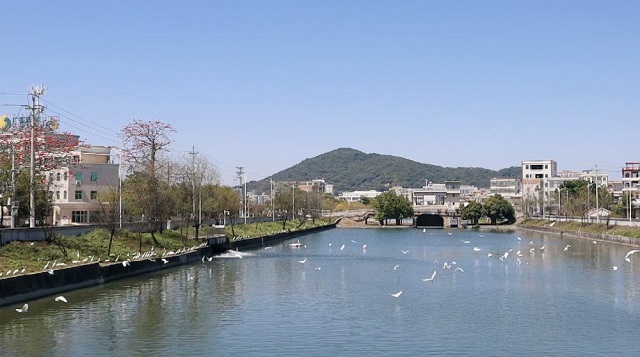 連通練江的護(hù)城河邊白鷺成群