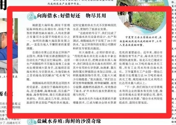 被蔚藍(lán)大海環(huán)抱、擁有千里綿延海岸線的山東煙臺(tái)市,卻是個(gè)典型的資源性缺水城市,人均水資源占有量?jī)H為全國(guó)平均值的五分之一。如何向浩瀚大海汲取發(fā)展之源,一直是當(dāng)?shù)厝瞬恍柑剿鞯闹匾n題。