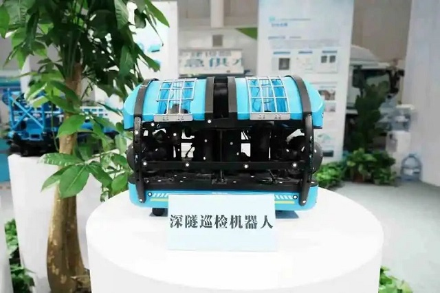 中建三局綠投公司參展的深隧巡檢機器人已應用于武漢大東湖深隧工程,能夠在高水位、多障礙物等復雜環(huán)境下,實現準確定向、定位、懸停等操作,最大工作水深100米,最長檢測距離4.5公里,最大抗流能力1.2米每秒,創(chuàng)新集成聲、光、電磁三位一體檢測系統(tǒng),對隧道內部厘米級厚度淤積和毫米級結構表面損傷進行檢測,檢測精度達90%以上,保障深隧安全穩(wěn)定運營