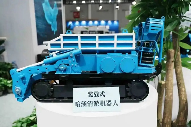 中建三局綠投公司參展的裝載式暗涵清淤機器人已應用于中山小隱涌項目,可適應淤泥板結、生活垃圾,和建筑垃圾混雜等復雜工況,24小時全天候作業(yè),最大清淤效率達18方每小時,相當于20名工人同時作業(yè)