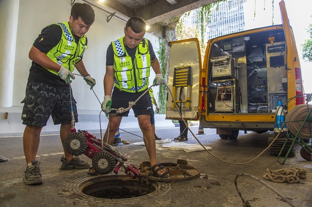 渝中區(qū)住房城市建委立即派出巡查人員和管道機器人進行溯源排查。兩個小時后,巡查人員找到事故原因——系附近施工挖破排污管網。相關部門隨即對破損管網實施修復,并向施工單位提供地下管線走向信息,事件得以高效處置。