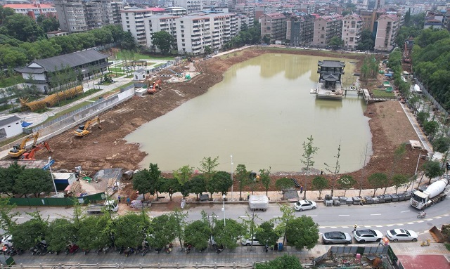 6月24日,在“兩湖”綜合治理工程調(diào)蓄池及雨水循環(huán)中心工程現(xiàn)場,工人在進行掃尾工作。工程建成后,初期雨水將實現(xiàn)就地處理,達標后直接補充湖水,讓兩湖煥發(fā)新的生機與活力。工程除了水處理及辦公功能外,還將為市民呈上全新的生態(tài)文化景觀,增添又一休閑好去處。