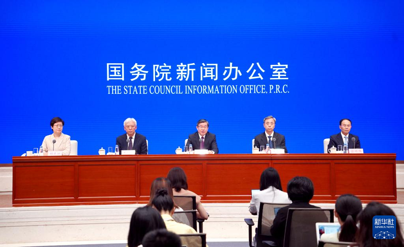 7月4日,國務院新聞辦公室在北京舉行新聞發布會,水利部副部長陳敏、水利部總規劃師吳文慶、國家發展改革委農村經濟司負責人關錫璠、水利部規劃計劃司司長張祥偉介紹全面推進江河保護治理有關情況,并答記者問。新華社記者潘旭攝