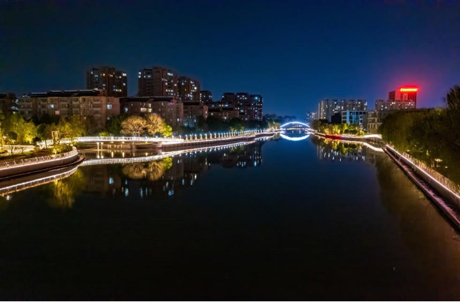 浙江嘉善縣伍子塘流域綜合整治工程后海晏河清的景象。